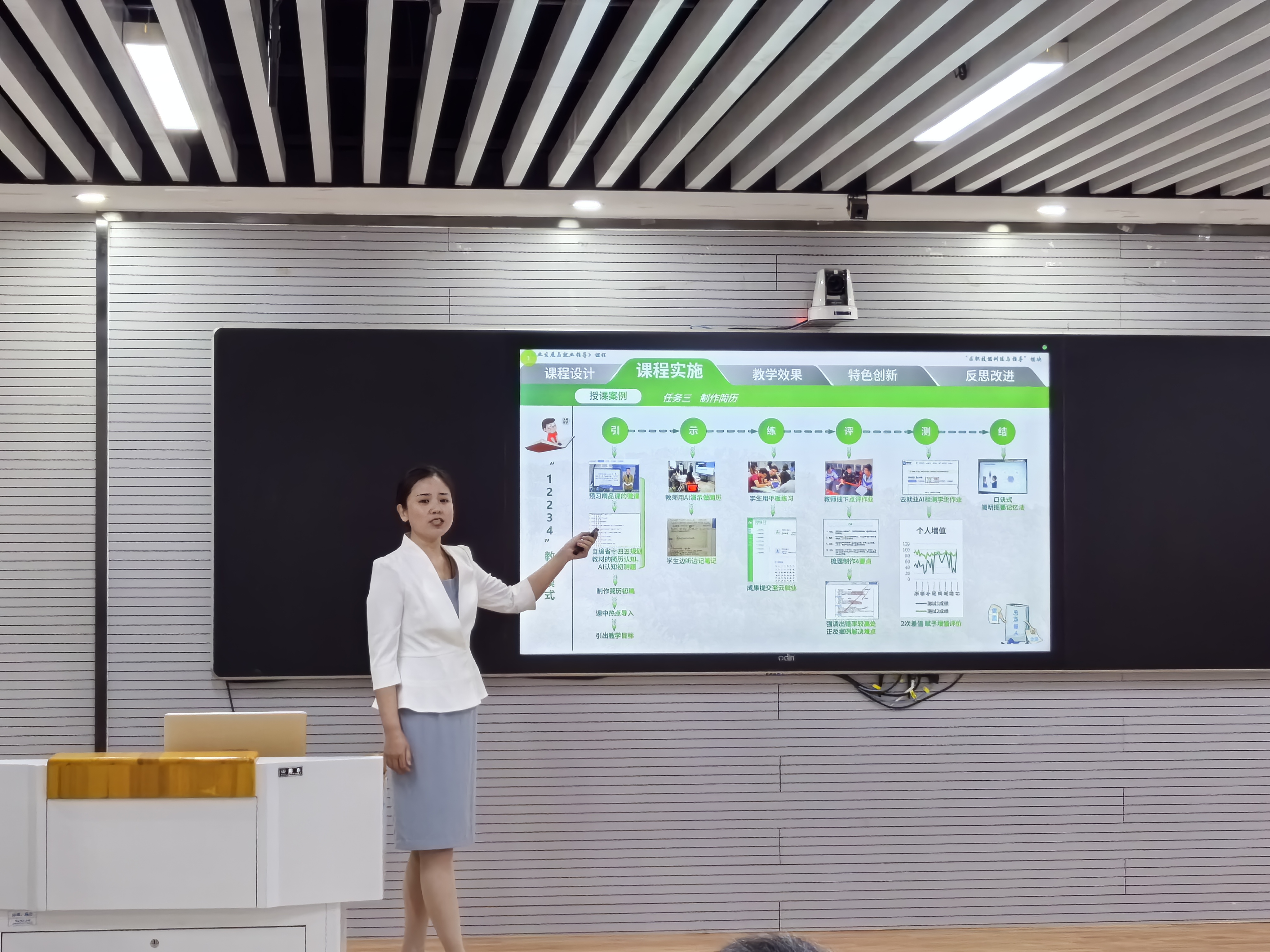 各團(tuán)隊進(jìn)行了教學(xué)實施報告的匯報、教學(xué)片段的展示和現(xiàn)場答辯。比賽現(xiàn)場,各團(tuán)隊通過實施報告的匯報充分展示了科學(xué)的課程內(nèi)容設(shè)計,教學(xué)改革的實踐,以及教學(xué)過程中的創(chuàng)新和反思。教學(xué)展示環(huán)節(jié)中,參賽教師進(jìn)行了生動的教學(xué)講解,展現(xiàn)了精心的教學(xué)設(shè)計和教學(xué)實施能力。在答辯環(huán)節(jié),三位專家評委針對參賽作品結(jié)合國家職業(yè)教育方針政策現(xiàn)場進(jìn)行提問。