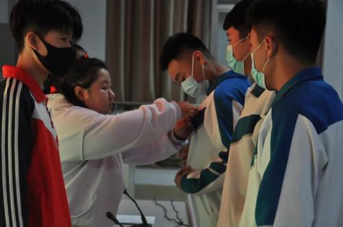 最后由王娟老師為學員代表佩戴入黨牌。分發黨課教材,分配黨號。開班儀式圓滿結束。