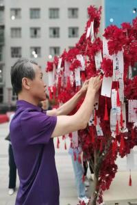 開幕式后,心理游園會進行得如火如荼。場地內也開設了多項游戲環節供大家暢玩。集齊一定的游戲項目通關章就可以得到不同的獎品。同時也可以寫下心愿或祝福掛在許愿樹上,暢想未來、把握現在。